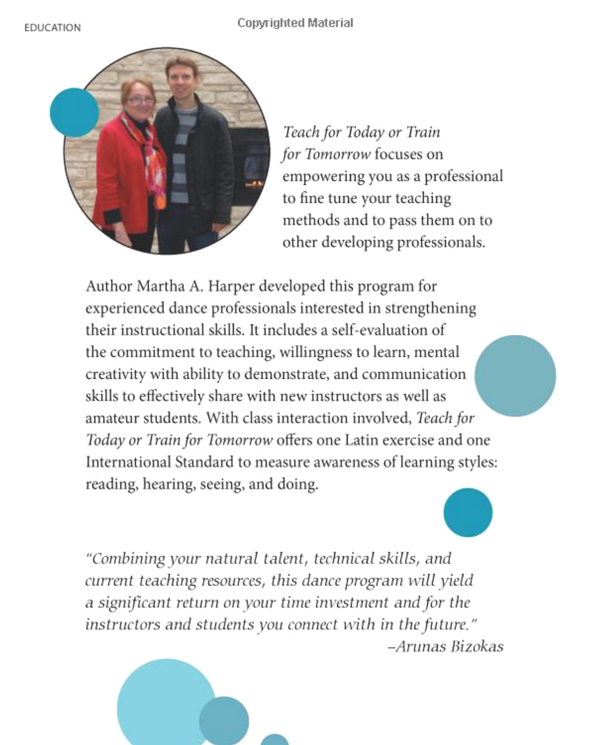 Martha Harper. Book author; Master in Educational Leadership; Pro-Am partner of Arunas Bizokas; 18 years of experience in programs: American Smooth, American Rhythm, Latin and International Standard.